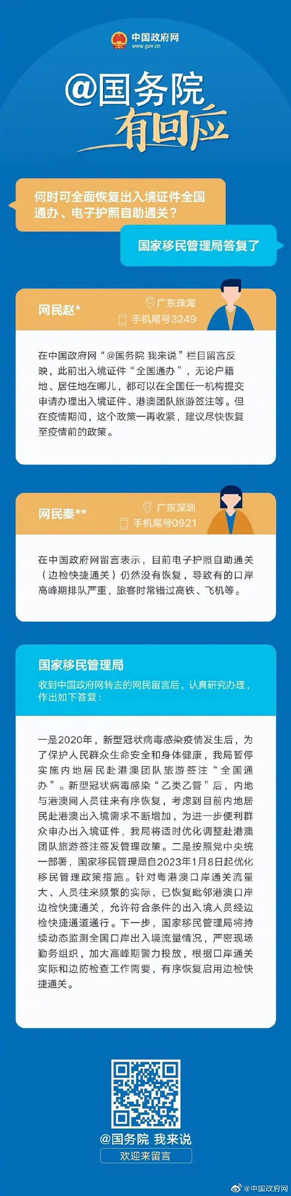 何时全面恢复出入境证件全国通办、电子护照自助通关?国家移民管理局答复了。
