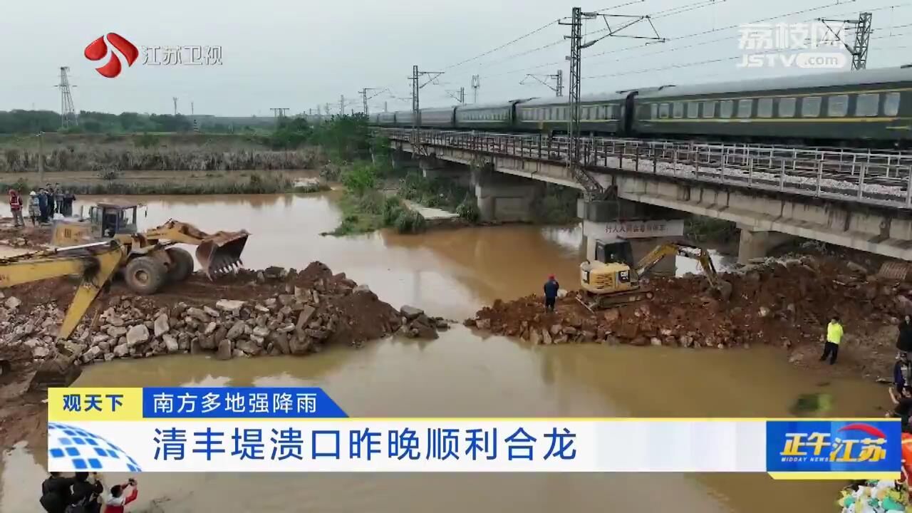 在抢险人员连续奋战29小时后,5月7日18时许,随着多辆作业机械将最后一车土石块倒入决口处,江西省丰城市京九线铁路桥下清丰堤溃口顺利封堵。