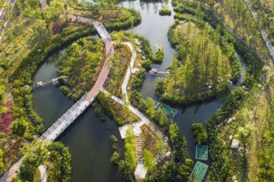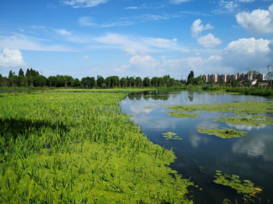 常熟城西污水厂的尾水生态净化系统,项目总面积约50亩,包括多水塘活水链湿地、出水河道、景观提升工程等,于2020年建成投用,设计日处理水量4万m3,目前每天能够净化处理城西污水厂排放的尾水2万m3。