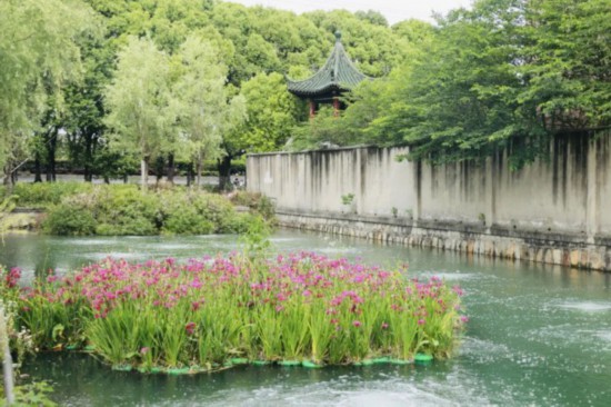 睡莲、黄花鸢尾、芦苇、香蒲、藨草、伊乐藻、樱花、垂柳、水杉、垂丝海棠……这仿佛就是“家门口”的生态“绿肺”。