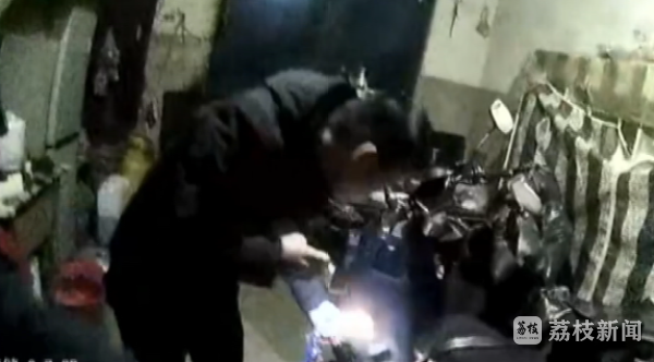 于是,民警查找案发时间段周边监控。果然发现一名男子推着电动车,走进了离案发地一公里的一个村庄里。但由于夜晚光线昏暗,无法看清嫌疑人的长相。不过,功夫不负有心人,反复查看监控,民警有了新发现。