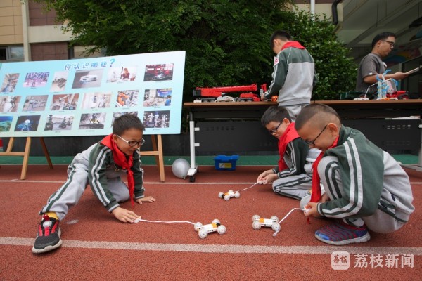 创意机器人、创意交通展、创意建筑师、创意AR课程……5月8日,南京市力学小学第七届大眼睛科技节开幕,校园内,各式各样的科学发明吸引了大量学生驻足围观。本届科技节主题为童创生活“一公里”,培养学生的创新意识,促进学生创造性成长,培养未来“小小科学家”。