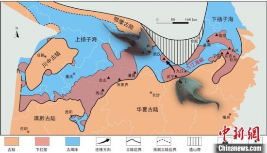 古地理研究表明在4.38亿年前的志留纪早期,以中国长江流域为主的华南板块曾是一片广阔的海洋,被称为扬子海。该海域又被进一步分为上、下扬子海,两者之间存在一狭长的浅海海域即九江海峡,纵贯东西、北临鄂豫古陆、南接华夏古陆。湖北武汉和江西武宁分别位于鄂豫古陆南侧和华夏古陆北侧,两地隔九江海峡跨海相望,最近处直线距离相距不足200公里。