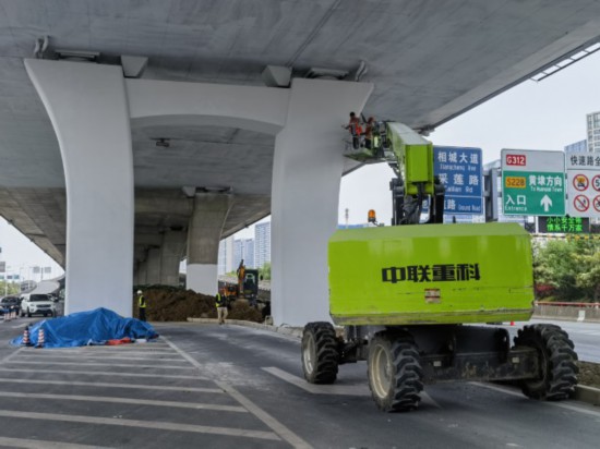 5月9日,记者来到了相城区澄阳路与太阳路交叉口,见到工人们正忙着高架桥外立面刷新。“已经开工10天,月底就能全部完成。”现场施工人员徐师傅说。