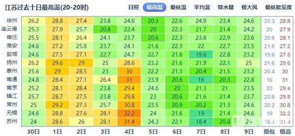 周六,江苏最高气温可达29~30℃。