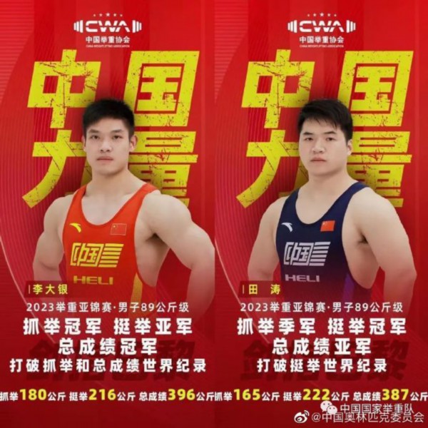 在5月10日在进行的奥运级别男子89公斤级比赛中,李大银以刷新世界纪录的方式获得抓举和总成绩金牌,成绩分别为180公斤和396公斤,挺举方面收获银牌;田涛以222公斤刷新世界纪录的成绩获得挺举金牌,抓举和总成绩获得铜牌和银牌。
