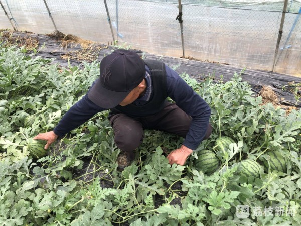 记者来到了有名的西瓜村——横溪街道的新杨社区,放眼望去,一片片的温室大棚里种满了小兰西瓜,在这里,农户几乎家家种瓜,户户卖瓜。西瓜种植大户王兆兴,从事小兰西瓜种植已经有30年的时间了,走进王师傅家的西瓜大棚里,满眼尽是绿意,长势茂盛的西瓜藤蔓随处可见,一个个圆滚滚的西瓜躺在瓜藤下等待采摘。