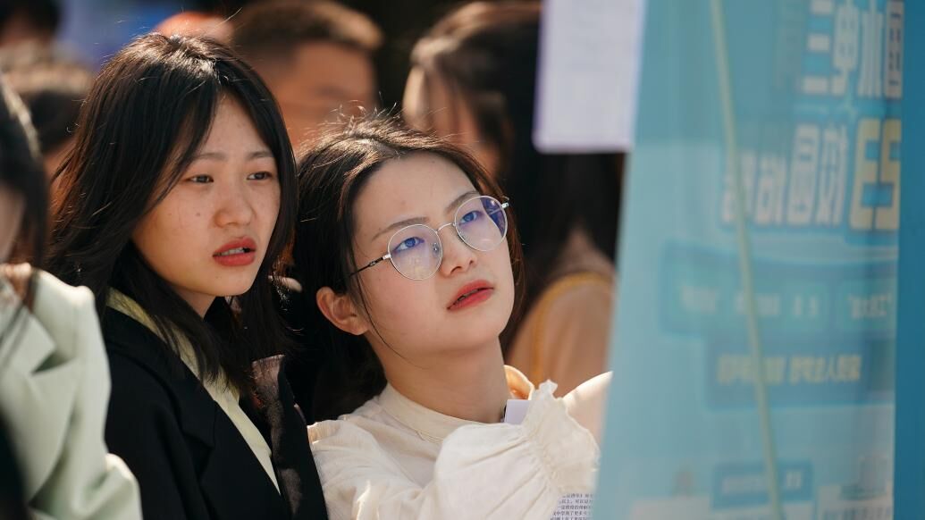 2023年3月16日,昆明,学生查看招聘单位的信息。中新社记者刘冉阳/视觉中国 图