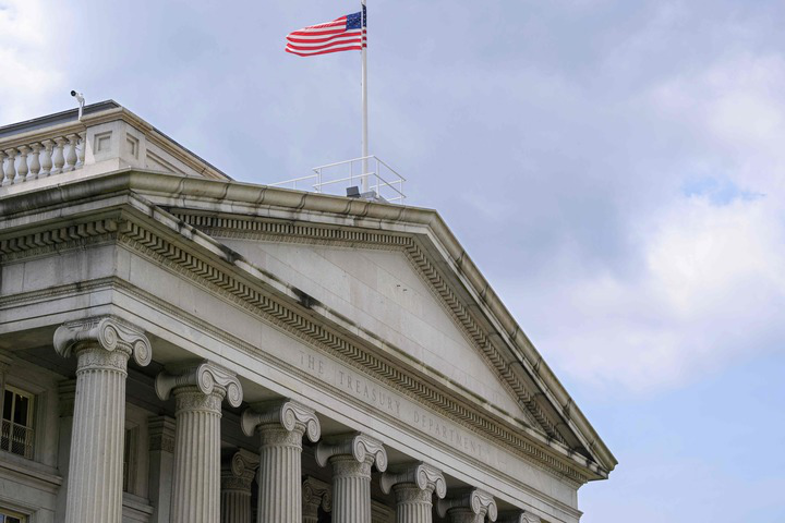 这是5月8日在美国华盛顿拍摄的美国财政部大楼。(新华社/法新)