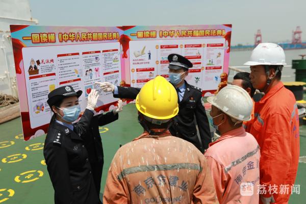 今年5月是全国第三个“民法典宣传月”,为推动《民法典》走进口岸群众生活、深入群众心田,5月12日,镇江出入境边防检查站联合长航公安局镇江分局在口岸一线开展以“美好生活·民法典相伴”为主题的口岸普法宣传活动。