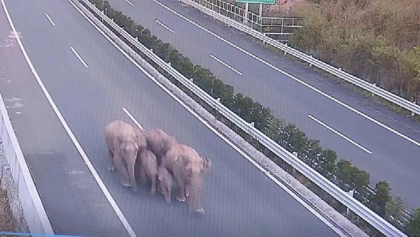 5月7日6时30分左右,几头野生亚洲象溜达上了思澜高速公路,并在路上悠闲地“散步”。思澜高速公路思糯高速交巡警大队和云南交投普洱管理处通过联合指挥中心发现象群后,立即开启“护送”模式。
