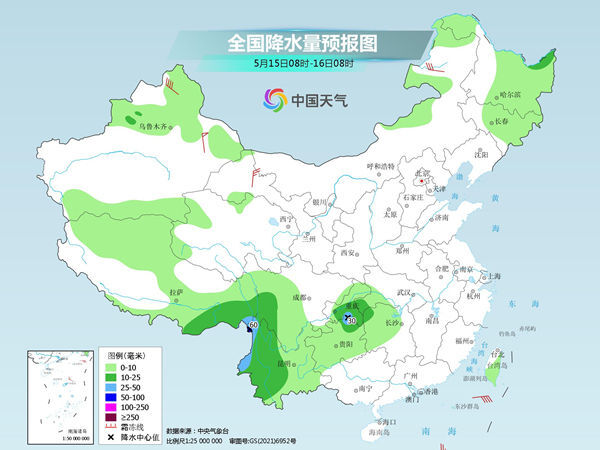 具体来看,中央气象台预计,今天,黑龙江东北部、西藏东部、川西高原南部、重庆中部、云南西部等地部分地区有中到大雨,其中,云南西北部等地部分地区有暴雨(50~60毫米)。