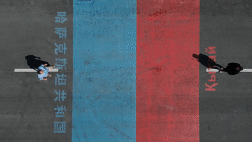 合作中心内,最有意思的“打卡地”当属连接通道——游客可以体验“一步迈两国”的奇妙。在中哈国境线的地面上,分别刷上红蓝两色并标注两国国名。当“疆小白”与奥斯帕诺夫双手握在一起时,两人都感慨,如此跨国见面太便捷了!