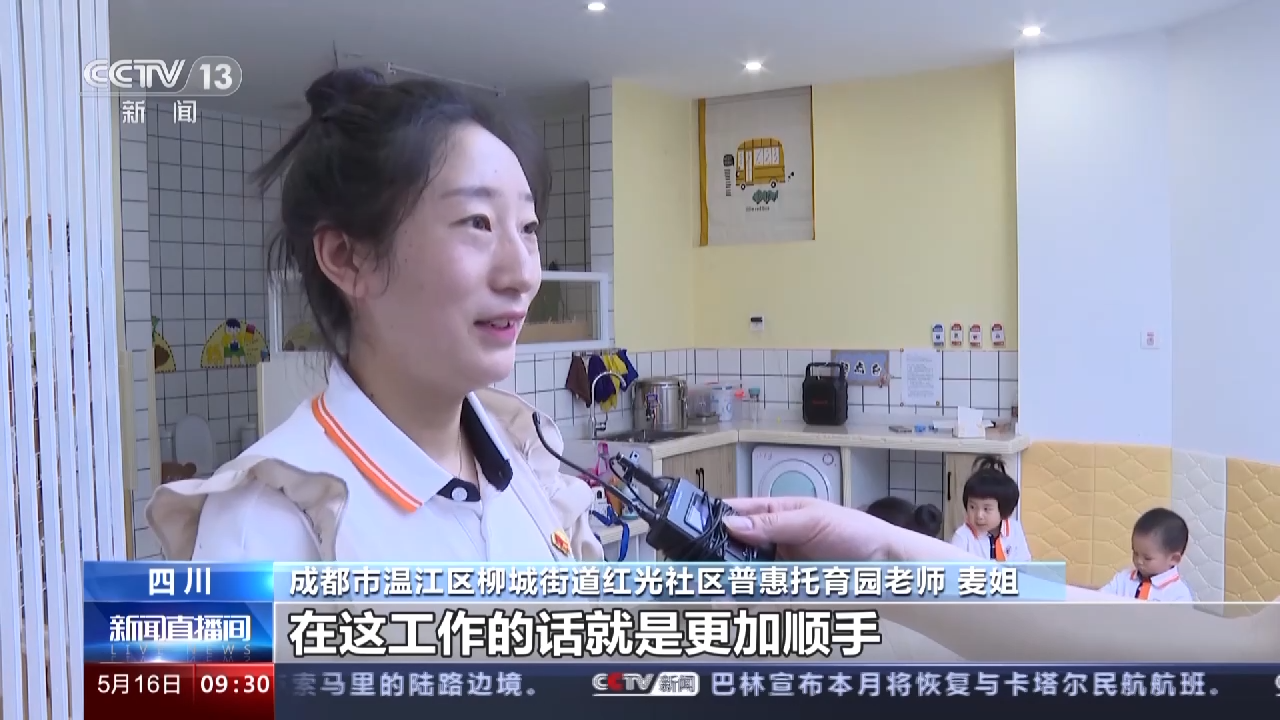 成都市温江区柳城街道红光社区普惠托育园老师 麦姐:因为自己就有照看小朋友的经验,所以说对于我来说,在这工作的话就是更加顺手。