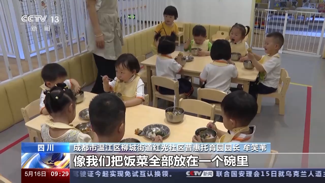 成都市温江区柳城街道红光社区普惠托育园园长 牟笑苇:我们把饭菜全部放在一个碗里,这样就可以避免宝宝养成挑食的坏毛病。