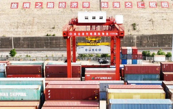 来自东南亚等地的车辆、机械设备、服饰在连云港港卸船装箱,通过铁运的方式一路向西;哈萨克斯坦等中亚国家出口的矿产品、粮食在连云港港装船出海,从太平洋扬帆起航。