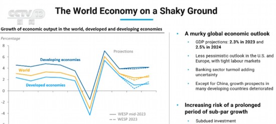 该报告还显示,在通货膨胀居高不下、利率上升和不确定性加剧的情况下,全球经济强劲复苏的前景仍然黯淡,世界经济仍面临长期低增长的风险。