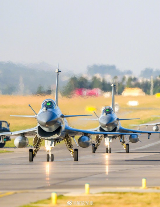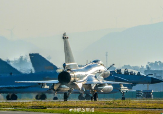 近日,南部战区空军航空兵某旅组织飞行训练。看多架战机呼啸升空,直刺苍穹。(王国云)