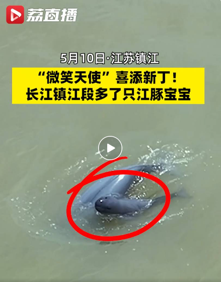 前不久,在镇江长江豚类省级自然保护区,摄影师拍到了怀孕江豚江中逐浪的画面。近日又有好消息传来,这头怀孕的江豚顺利产仔了。画面中,才出生几天的小江豚肤色黝黑光亮,时而嬉戏玩耍,时而跃出水面,模样憨态可掬。
