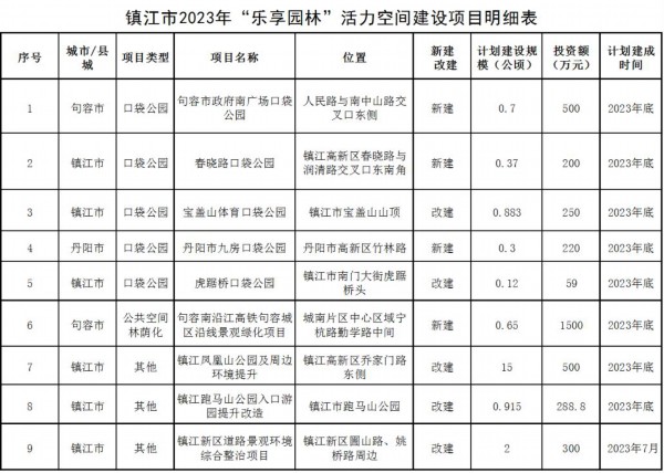 镇江市2023年“乐享园林”活力空间建设项目明细表