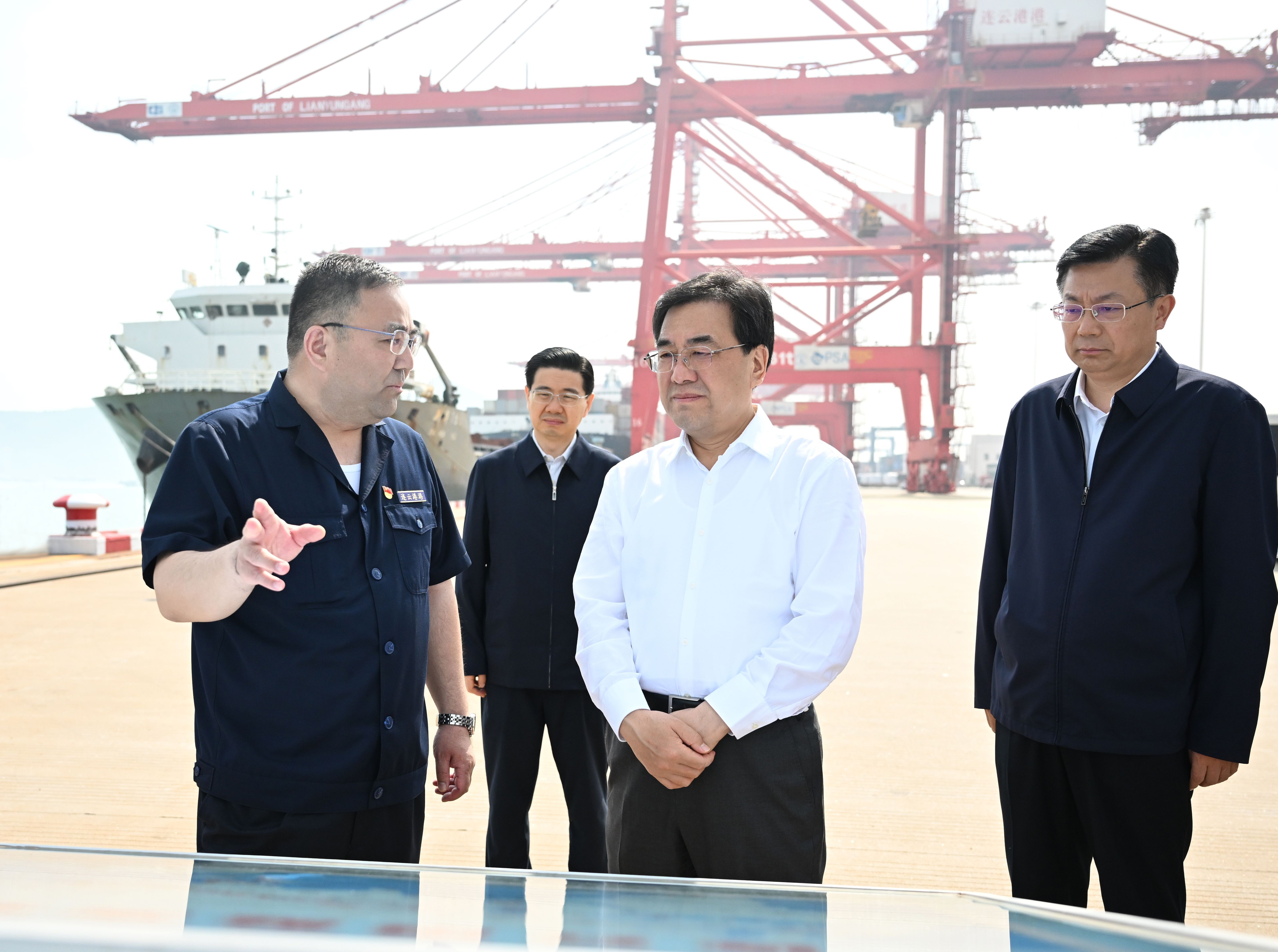 山海相拥、依港而兴,港口是连云港承载国家战略、扩大对外开放的关键所在、潜力所在。信长星来到集装箱码头,听取港区功能、航线布局等情况介绍。他指出,要完善基础设施、拓展港口腹地,做强海铁联运、海河联运,打造多功能、综合性、现代化的国际枢纽海港,在推动区域经济协调发展、构建现代化产业体系中当好重要引擎。在中哈物流合作基地,信长星通过视频察看中欧班列运行情况,了解与“一带一路”沿线国家地区合作成果,希望基地不断创新服务模式、加强陆海联动,更好地促进中国同中亚国家的互联互通、贸易往来,打造“一带一路”合作倡议的标杆和示范项目。