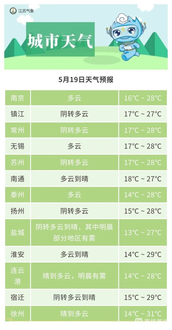据江苏省气象台最新发布的消息:未来三天全省以多云天气为主,气温回升。明晨本省东北部地区有雾或浓雾。