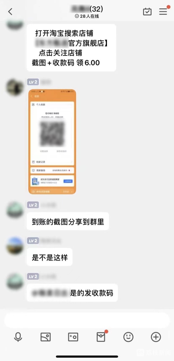提示大家打开淘宝后,10点,“小太阳”派发了第一个任务:“打开淘宝搜索店铺【某某官方旗舰店】,点击关注店铺,截图+收款码 领6元。”陆续有几个人按照指令进行了操作并领到了6元红包。10点15分许,“小太阳”趁热打铁发布了第二个任务,这次完成任务的人可以领到7元。此时,民警已基本确认,这就是一个典型的刷单诈骗QQ群。