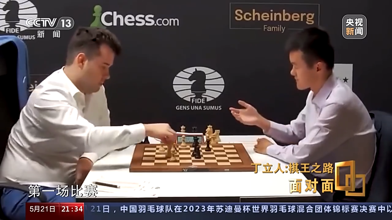 国际象棋“世界棋王”的产生方式跟现代其他体育赛事不同,很像过去江湖上的“打擂台”:一群高手先混战一番,决出最强的一位,这个过程就是“候选人赛”,候选人赛的冠军再跟现任“世界棋王”一决高下,胜者就是新任“世界棋王”。丁立人曾先后参加了2018年和2020年的候选人赛,只不过成绩排名靠后,无缘下一步的世界冠军赛。到了2022年,他再次进入“候选人赛”,开局对阵的就是俄罗斯名将涅波姆尼亚奇。