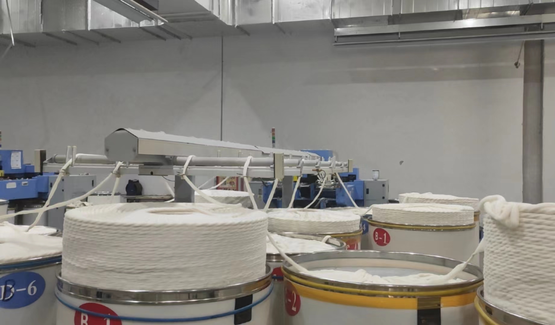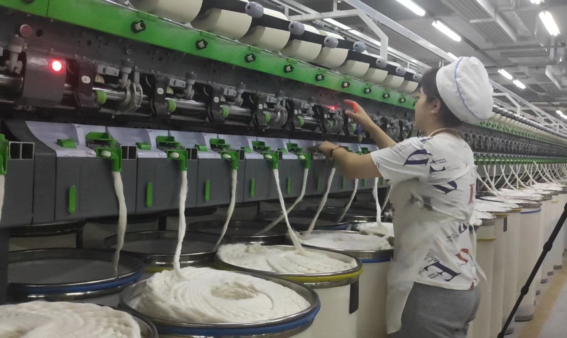 新疆贻程纺织科技有限公司总经理沈晖介绍,公司由江苏南通创程纺织有限公司投资建设,以生产气流纺优质高支纱为主,是南通家纺交易市场的优质棉纱供应商。2021年6月,在南通援疆工作组的引荐下,新疆贻程纺织科技有限公司正式落户伊宁县纺织产业园,总投资2亿元,建设15万锭规模高支纱生产线,与园区坯布织造企业形成稳定的上下游产业链关系。