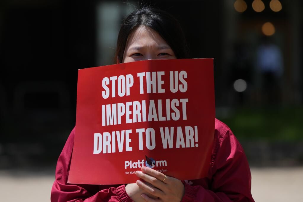 5月21日,民众聚集在日本广岛袋町公园,抗议七国集团峰会。新华社记者张笑宇摄