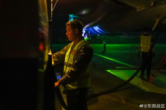 战机轰鸣,航灯闪烁。近日,东部战区空军某场站组织轰炸机跨昼夜飞行保障演练,通过模拟实战背景,全面锤炼官兵全天候保障能力。(孙乐、曹智、舒龙)
