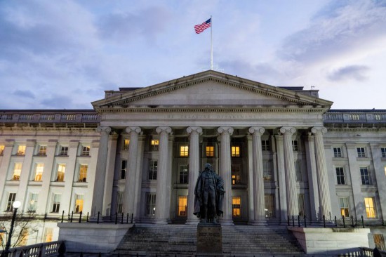 这是在美国首都华盛顿拍摄的财政部大楼。(新华社记者刘杰摄)