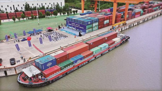 姜堰内河港开通“宜东精品快航”首航启动仪式现场。钱立群供图