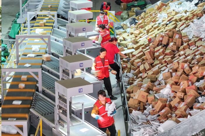 沭阳县是闻名全国的花木之乡,也是全国图书集散地,全县有电商5万多家。今年以来,随着花木、图书市场消费回升,该县的快递业务量也不断增加。据统计,今年一季度,沭阳县快递发件量达1.63亿件,相较去年同期增长38%。(丁华明 干陈 摄)