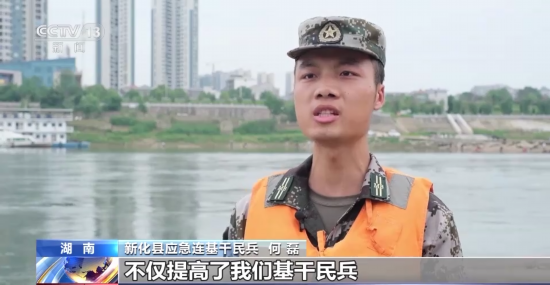 新化县应急连基干民兵 何磊:此次防汛抗洪应急演练,不仅提高了我们基干民兵对防汛专业技能熟练度,也增强了我们应对突发事件的应急抢险能力,更为应对汛期险情提供了宝贵的实战经验。