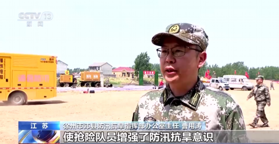 徐州市沛县防汛抗旱指挥部办公室主任 曹用涛:通过此次演练活动,使抢险队员增强了防汛抗旱意识,锻炼了抢险技能,为今年更好完成防汛抗旱工作打下了坚实基础。