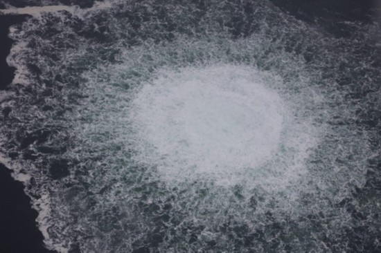这张瑞典海岸警卫队2022年9月28日发布的航拍照片显示的是,“北溪-1”天然气管道泄漏大量气体。新华社发(瑞典海岸警卫队供图)