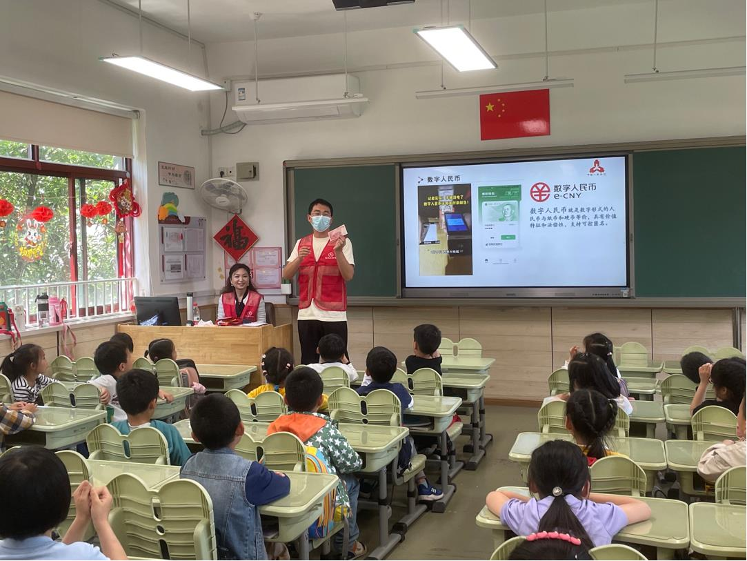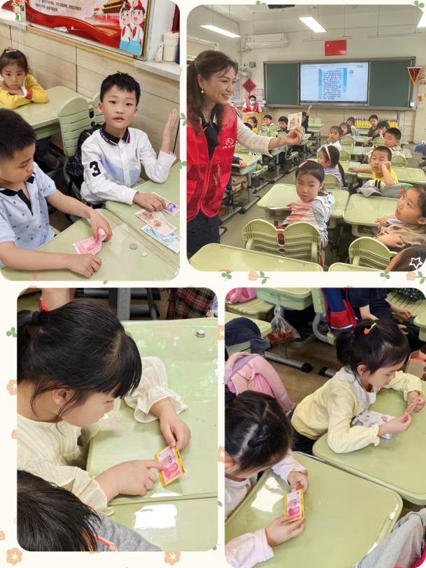 交通银行江苏省分行刘主管则给同学们带来了一节以“货币的前世与今生”为主题的人民币宣传课,向同学们介绍了货币的发展历史,特别对数字人民币相关知识、遇到假币怎么办、以及正确使用人民币图样等内容进行了重点讲解,通过互动小游戏,引导同学们更加直观地学会使用、爱护人民币。
