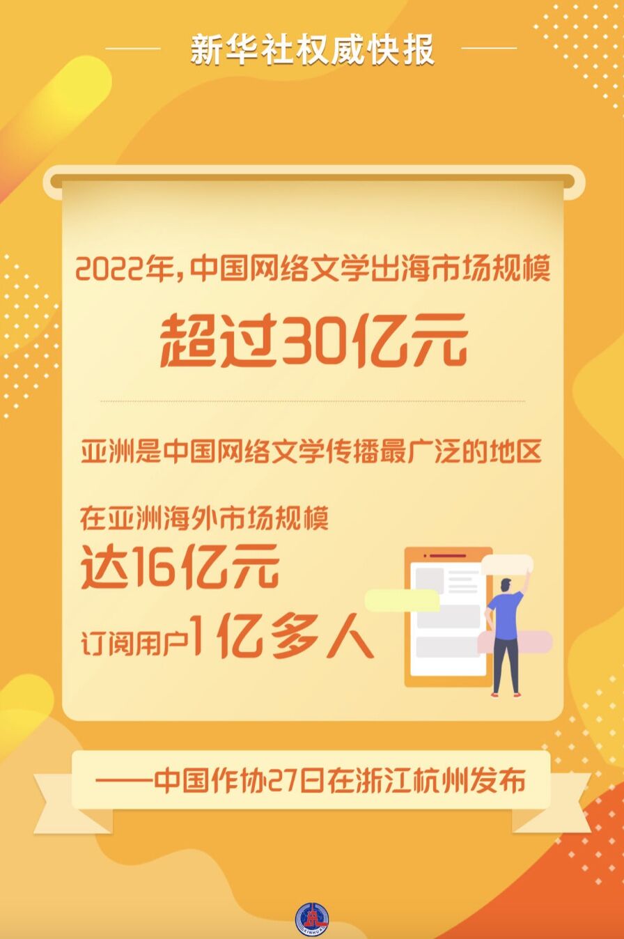 由中国作家协会等主办的“2023中国国际网络文学周”5月27日在浙江杭州开幕,开幕式上发布的《中国网络文学在亚洲地区传播发展报告》显示,2022年,中国网络文学出海市场规模超过30亿元。