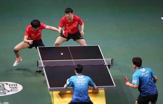 当地时间5月27日,2023年世乒赛在南非德班结束男双决赛争夺,中国队世界排名第一的组合樊振东/王楚钦以3:0击败韩国队组合张禹珍/林钟勋,首夺男双冠军。