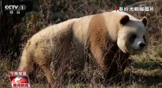 北京大学生命科学学院研究员 李晟:在大熊猫分布的北端的秦岭地区存在着另外一种比较罕见的大熊猫的色型,是一种棕白色。(卧龙)记录到一个非常罕见的白色(白化)的大熊猫,它可能是由于基因变异。