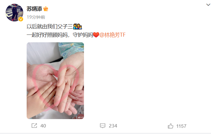 荔枝新闻讯 5月28日,“亚洲飞人”苏炳添宣布喜讯,妻子林艳芳二胎产子。苏炳添的喜悦溢于言表:“以后就由我们父子三,一起好好照顾妈妈,守护妈妈。”