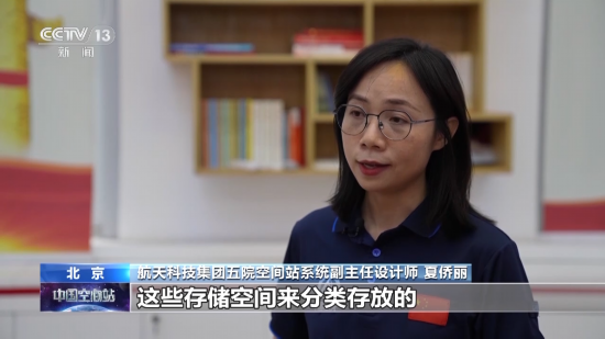 航天科技集团五院空间站系统副主任设计师夏侨丽:这么庞大的物资,我们是利用空间站设计好的这些存储空间来分类存放的,所以神舟十五号乘组需要对于不同类别的物资存放在哪里,需要给神舟十六号乘组做一个交接。