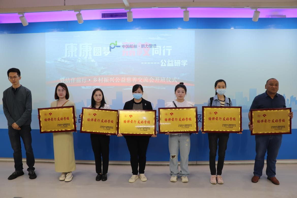 活动中,省妇儿基金会副理事长王华、省妇儿基会功勋理事长陈秀云分别向涟水、南京相关中小学颁发“结伴前行 友好学校”铜牌,向中船第八研究院颁发“高校公益实践基地”铜牌。南京航空航天大学校团委副书记庞依达向省委驻涟帮促工作队成员蔡彦、徐旭东、谷林轩、孙登冰、张莉、董平颁发“乡村振兴公益慈善实践导师”聘书。