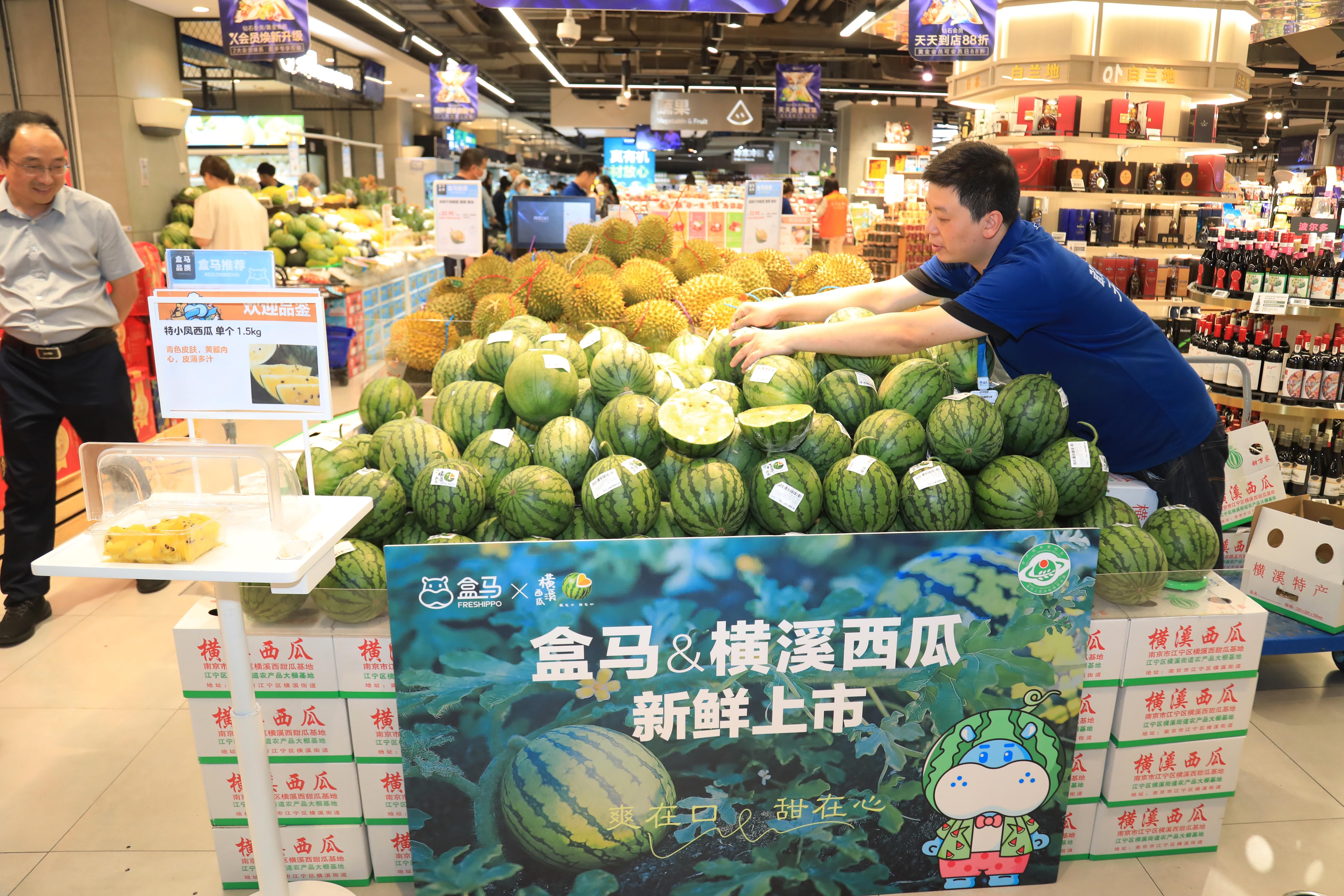 “横溪低山丘陵地区的沙质土壤和得天独厚的温、光、水、肥条件以及优良品种和先进栽培技术的综合应用,成就了横溪西瓜皮薄、瓤脆、甘甜、多汁、爽口的特点。”横溪街道办事处副主任潘训国表示,盒马也是目前横溪西瓜唯一指定的商超销售渠道。