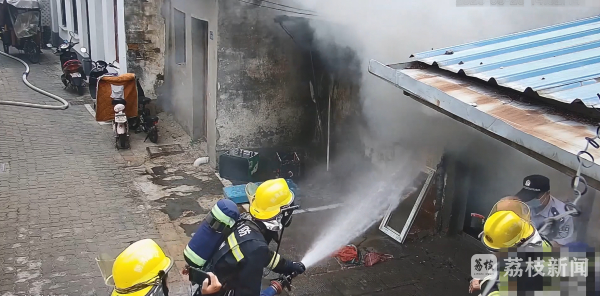 由于该地位于常熟老城区,道路狭窄蜿蜒,消防车无法驶入,只能紧急从外围拉设高压水管。最终在十余分钟的努力后,火被扑灭。