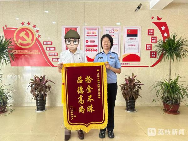 5月29日上午九点刚过,江苏丹阳市民杨先生拿着一面印有“品德高尚 拾金不昧”的致谢锦旗,来到丹阳市公安局南环路派出所。再次看到捡到自己钱包的女民警周慧雅,杨先生仍旧很激动:“真的非常感谢,不是你,我当天晚上可能都不会发现钱包丢了!”