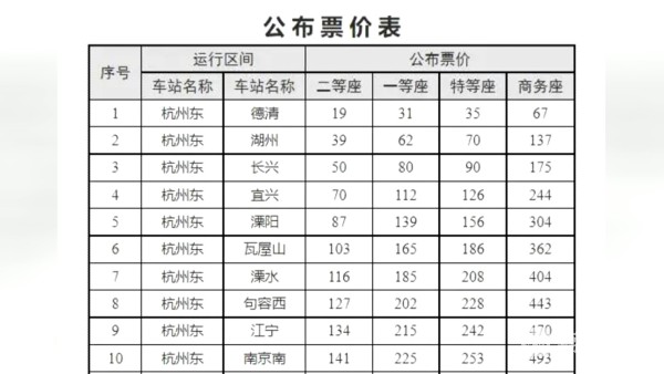 根据市场需求,区分季节、日期、时段等因素,铁路部门从5月30日起,对沪宁城际、宁杭高铁列车建立灵活定价机制,实行有升有降、差异化的折扣浮动策略。各站间的执行票价以公布票价为上限、6.6折为下限。(电子表格)以沪宁城际为例,南京站到上海站二等座公布票价为166元,执行6.6折票价的话,是110元;而宁杭高铁,南京南站至杭州东站二等座公布票价为141元,执行6.6折票价的话是93元。