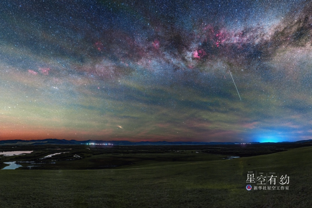 广西天文摄影爱好者王晋2021年5月15日在内蒙古呼伦贝尔市黑山头拍摄的ISS过境轨迹照片。(本人供图)