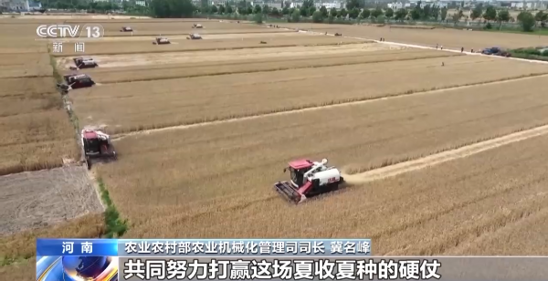 农业农村部农业机械化管理司司长 冀名峰:小麦机收必须立足“抢”字当头,各级农机部门和在黄淮海参加麦收的80万农机手,一定要克服困难连续作战,共同努力打赢这场夏收夏种的硬仗。
